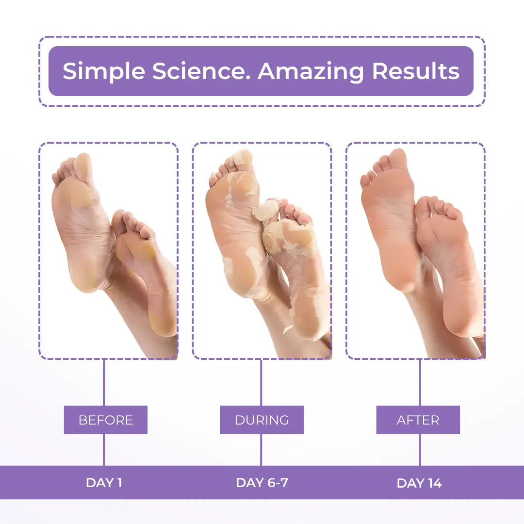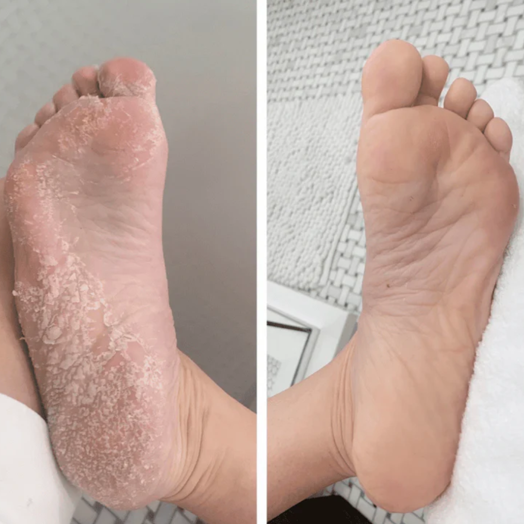 The mask exfoliates dead skin by gently breaking it down over 3-7 days after use. The skin naturally peels off, revealing softer, smoother feet underneath.